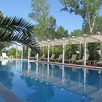 Det finns fitnesslektioner och utomhusbassäng på stället.